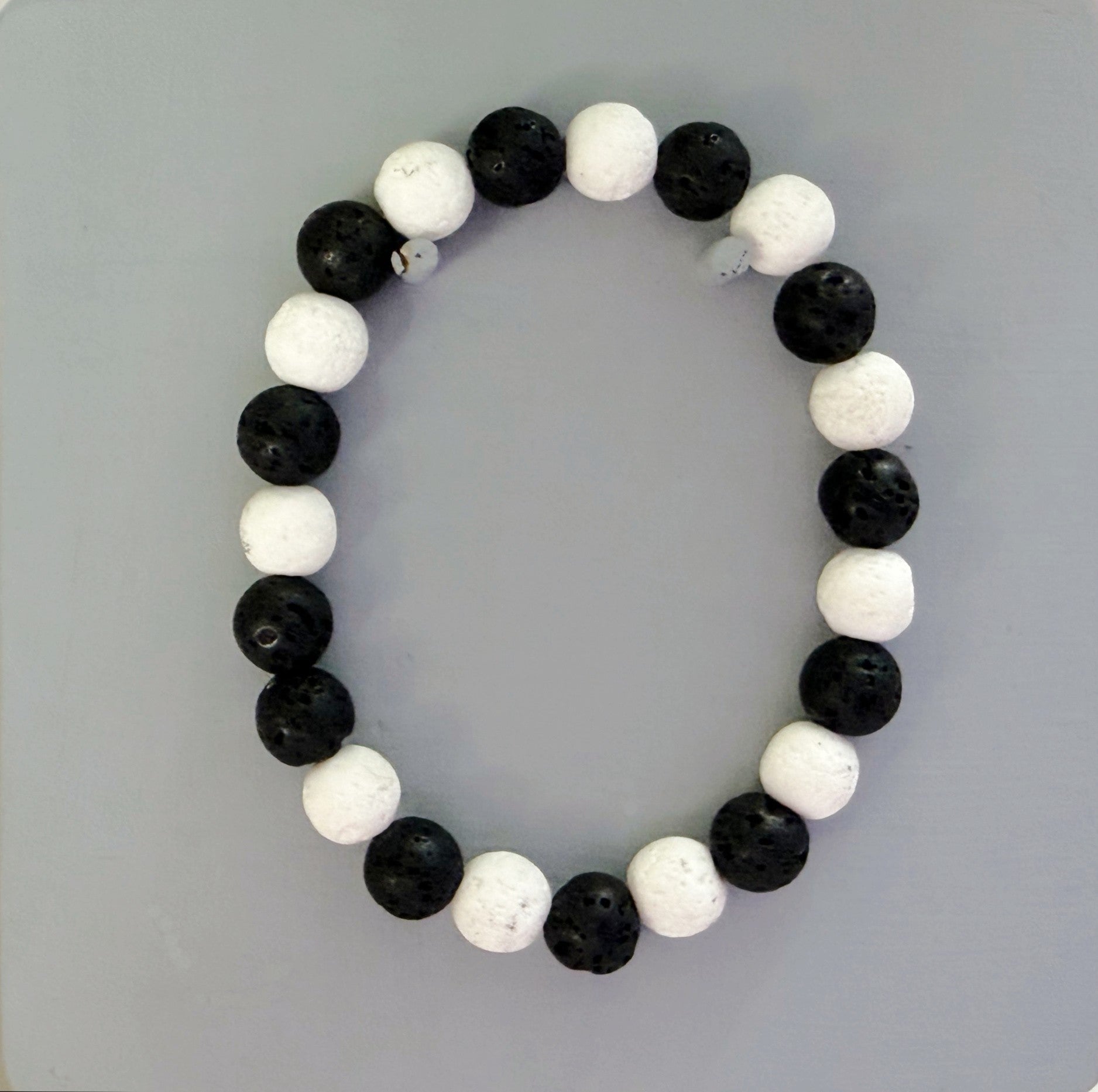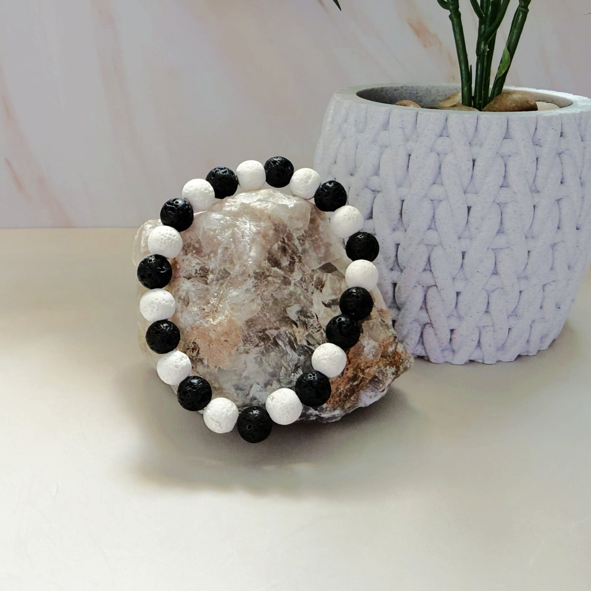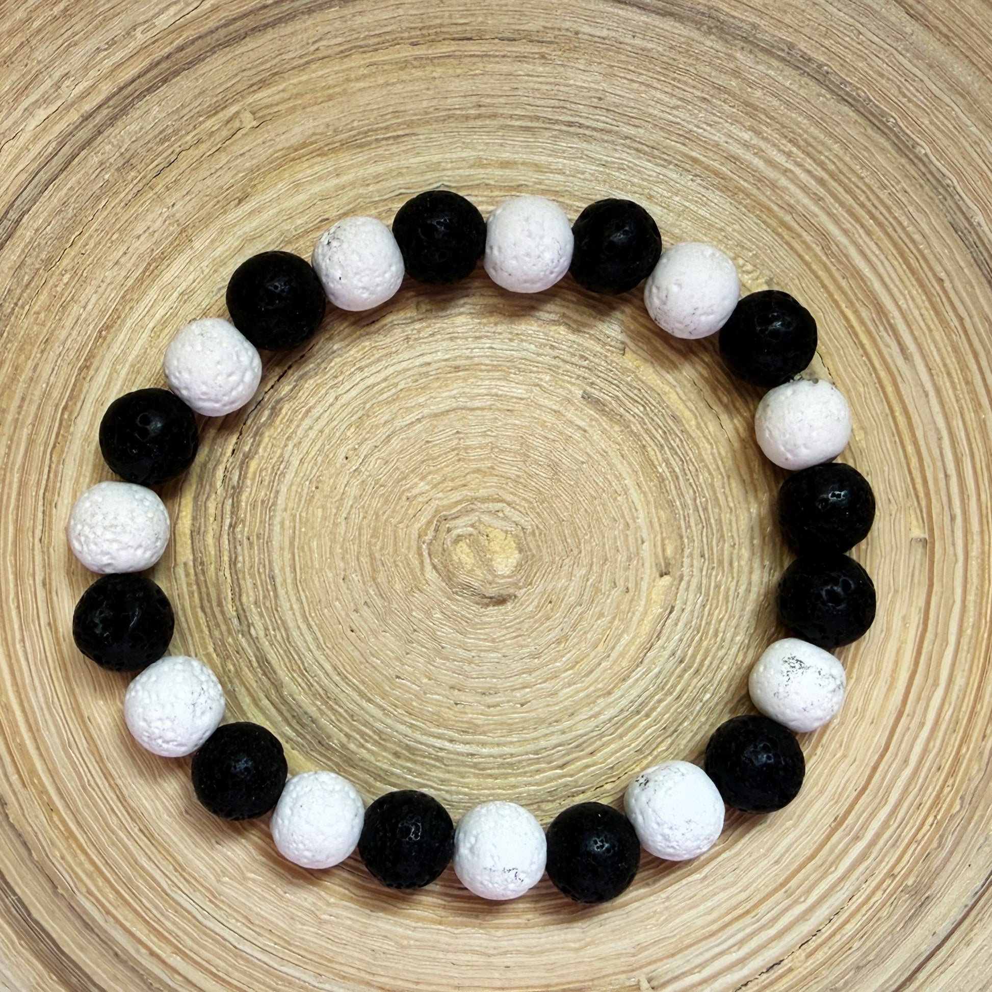 Genuine Black & White Lava Stone Bracelet – 8mm Natural Beads