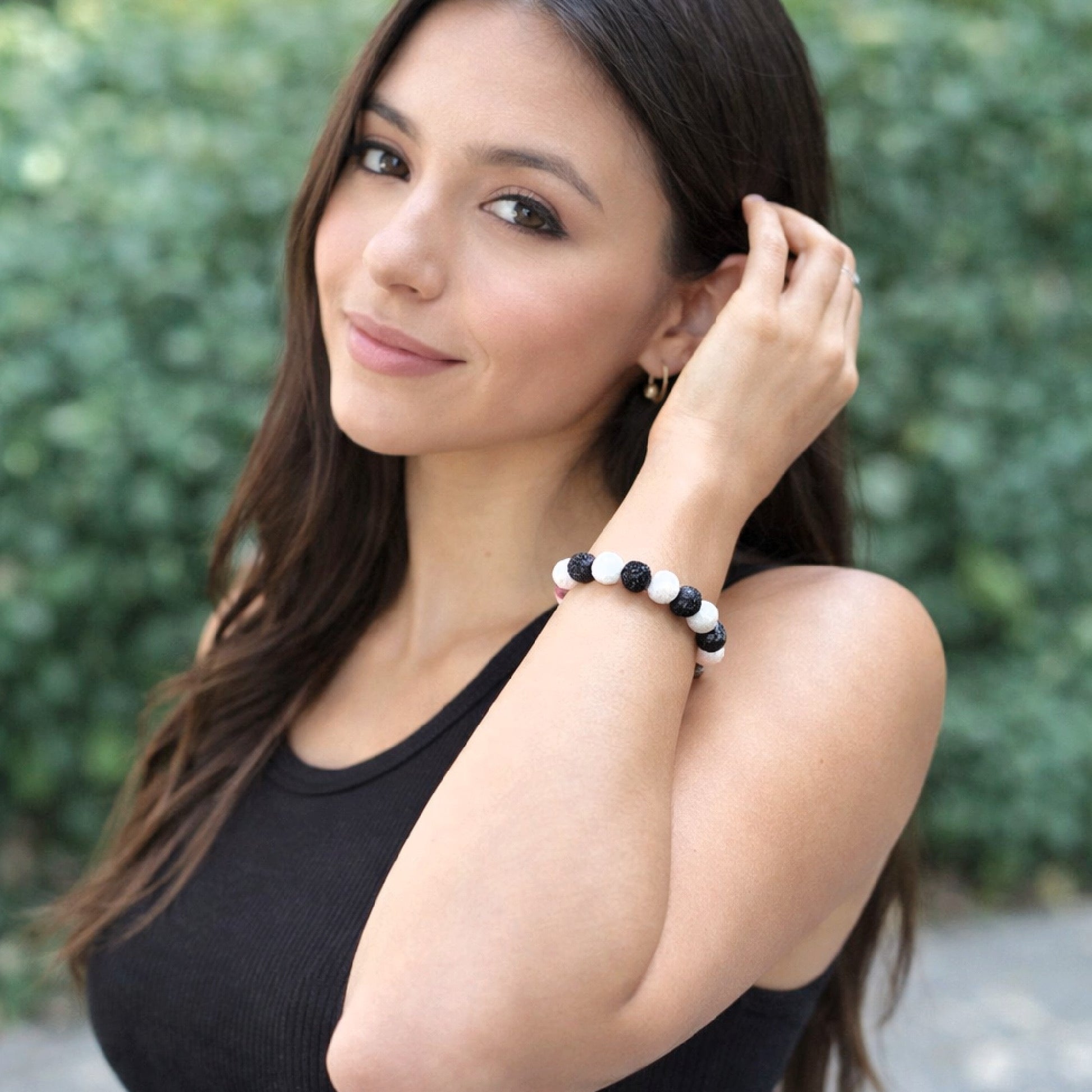 This Genuine Black and White Lava Stone Bracelet features natural 8mm lava beads in a bold, minimalist pattern that pairs effortlessly with any style. Known for their grounding and calming qualities, lava stones are formed from volcanic rock, giving each bead a naturally textured surface and one-of-a-kind character.