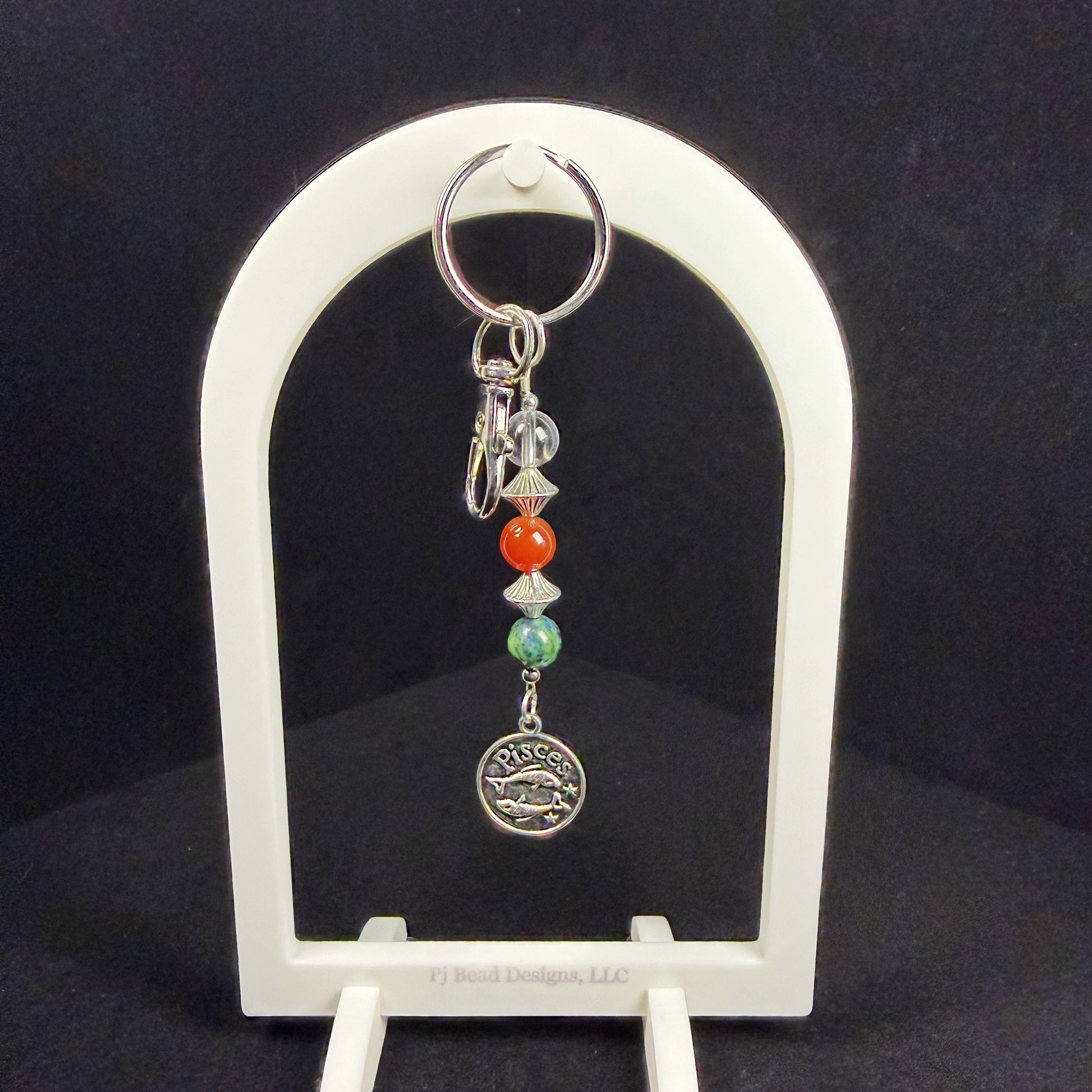 Celebrate the gentle and imaginative energy of Pisces (February 19 – March 20) with this handcrafted natural crystal keychain from Pj Bead Designs, LLC.